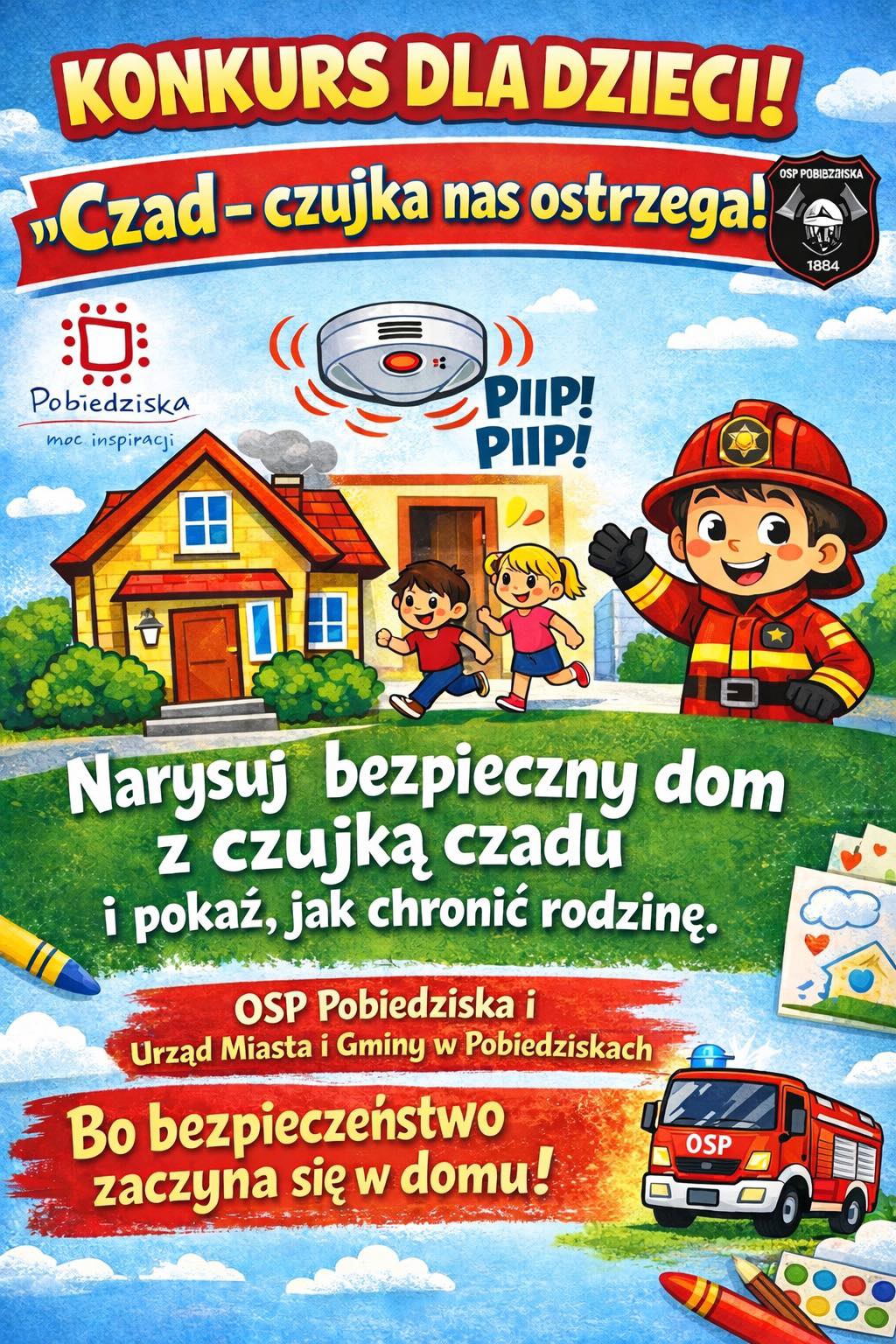 Ochotnicza Straż Pożarna w Pobiedziskach oraz Urząd Miasta i Gminy Pobiedziska zapraszają dzieci i młodzież do udziału w konkursie plastycznym pt. „Czad – czujka nas ...
